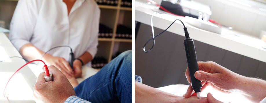 There are pressure points on the hands and feet that are linked to every part of the body. During a consultation, the patient holds a cylindrical electrode in one hand whilst Joanna touches the acupuncture pressure points on the hands and feet with a painless non-invasive metal probe to instigate a reading on the BFD machine.